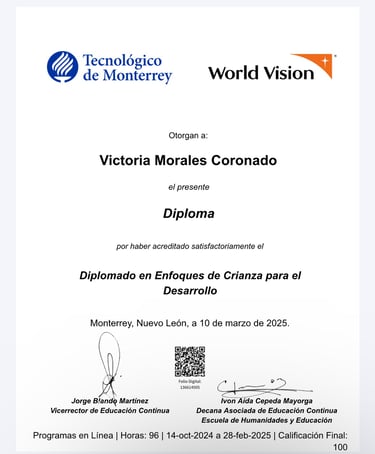 Soy egresada del Tec de Monterrey, hice pediatria en el Hospital Angeles Pedregal, un fellowship en neurodesarrollo en el Boston Children's Hospital, y una certificación internacional en Lactancia, entre muchas cosas más, siempre estoy aprendiendo algo nuevo.